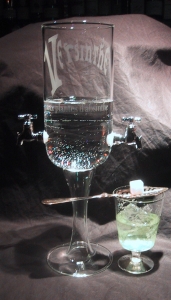 アブサン給水器に水を入れ、アブサンカクテルの準備をする。
