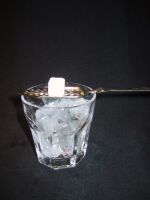 2.スプーンに角砂糖を乗せ、グラスのアブサンへ軽く浸ける。