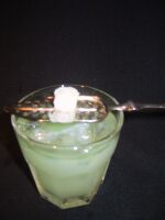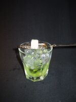 砂糖が溶け崩れた後に、アブサンスプーンで軽く混ぜて飲みます。