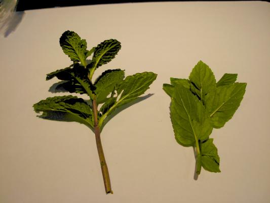 香りもちょっと違う、スペア・ミントと比べると香りは穏やかでより草っぽい。